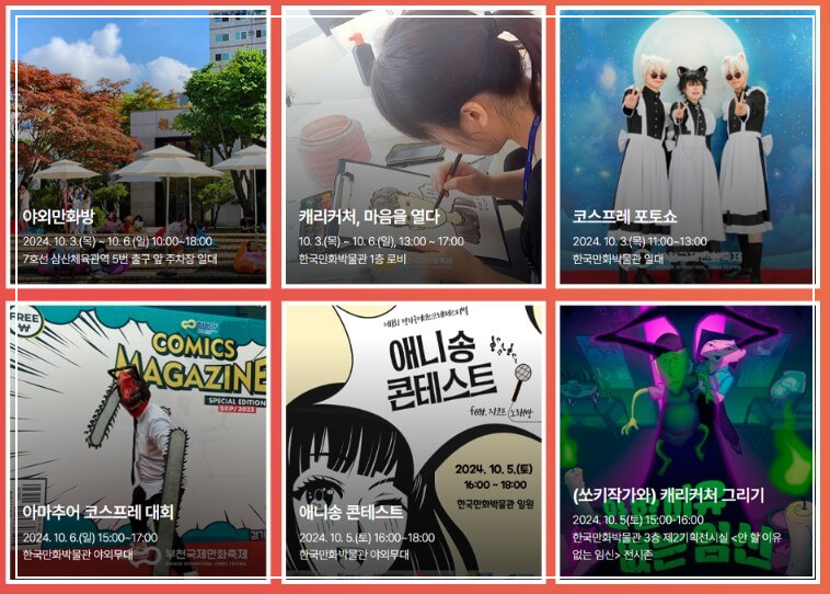 올해로 27주년을 맞이한 부천국제만화축제는 2024년 10월 3일부터 6일까지 경기도 부천의 한국만화박물관 일대에서 개최됩니다.