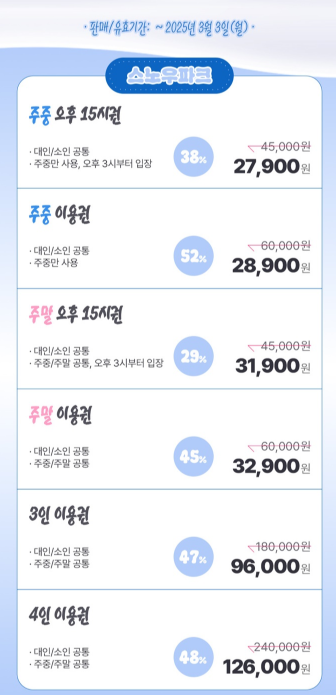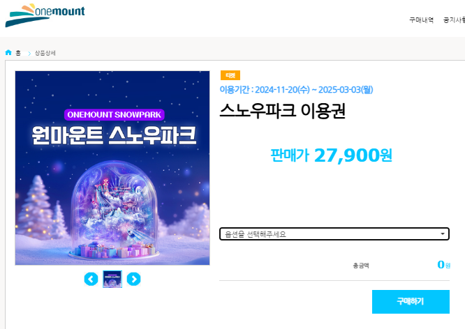 원마운트 스노우파크에서는 사전 예매를 통해 할인 혜택을 제공하고 있습니다.