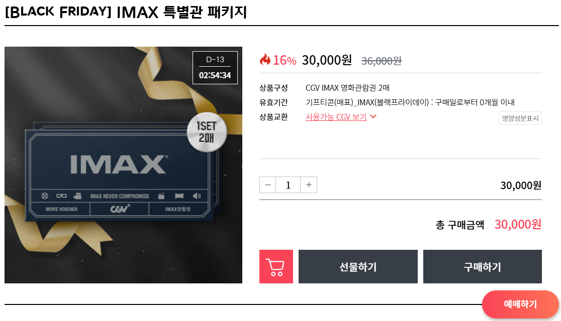 CGV IMAX 특별관 패키지 16% 할인