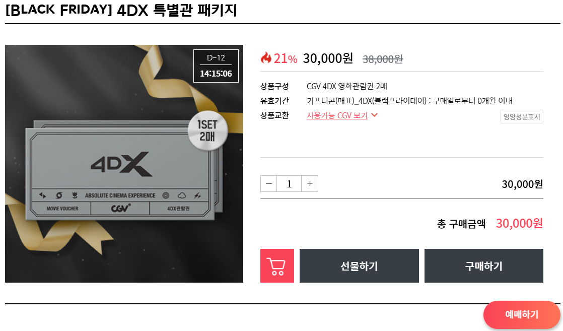 CGV 4DX 특별관 패키지 21% 할인