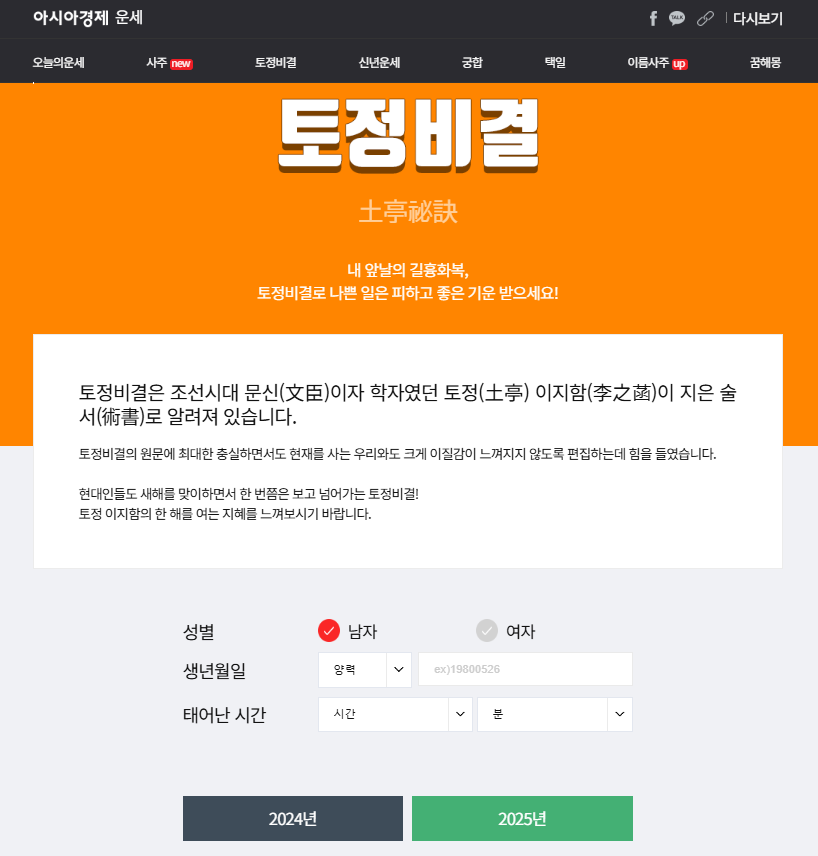 아시아경제 사주·운세에서는 정통 사주와 신년운세를 무료로 확인할 수 있습니다.